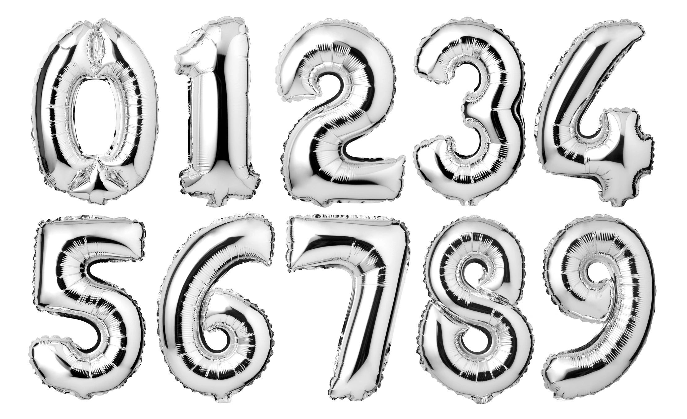 40 Inch Number Mylars colors available Silver, Gold, Black, Rainbow, Pastel, White, Rose Gold